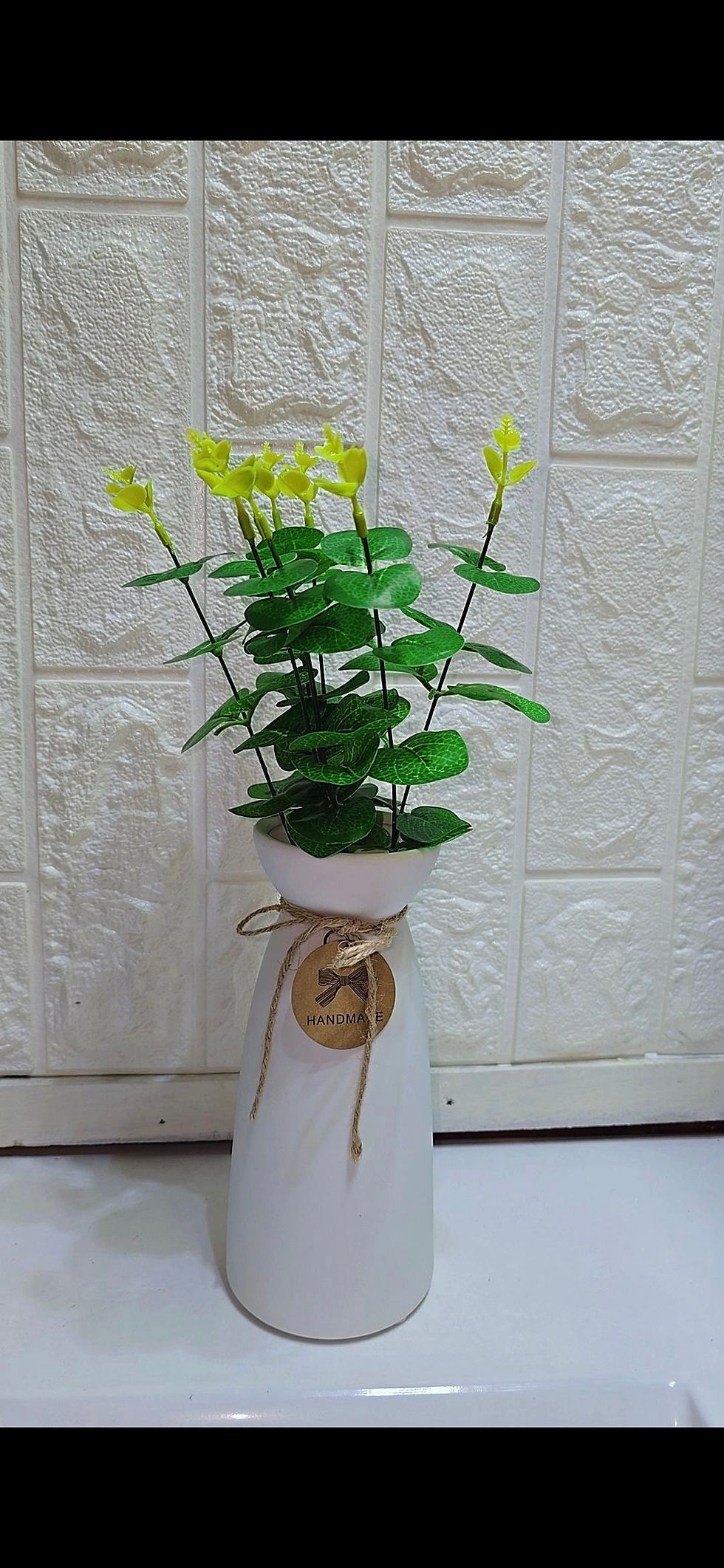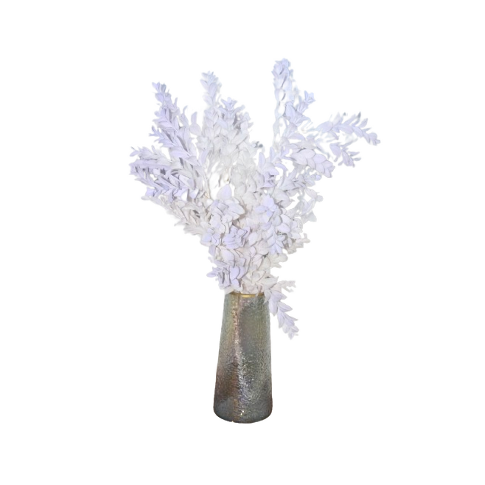Faux Eucalyptus White with Purple in Iridescent Vase
